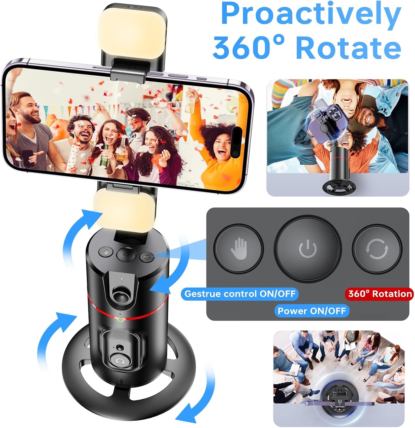 Upgrade your content creation with the 360 Auto Face Tracking Tripod Smart Phone Holder,