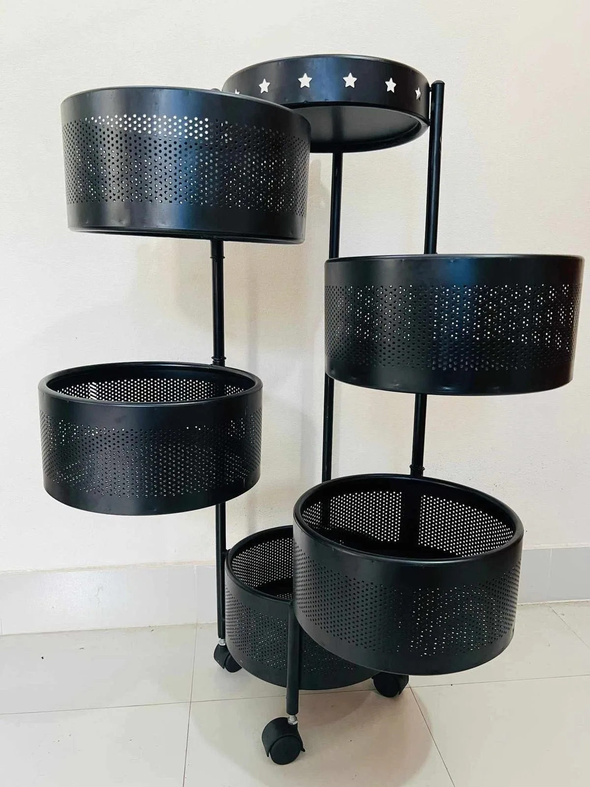 The 5 Layers Kitchen Rotating Shelf is a smart and space-saving storage solution designed to keep your kitchen neat and organized.