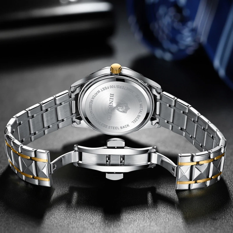 The BINBOND 2521 men’s wristwatch features a stainless steel body, accurate quartz movement, and waterproof protection—perfect for business, casual, and everyday wear.