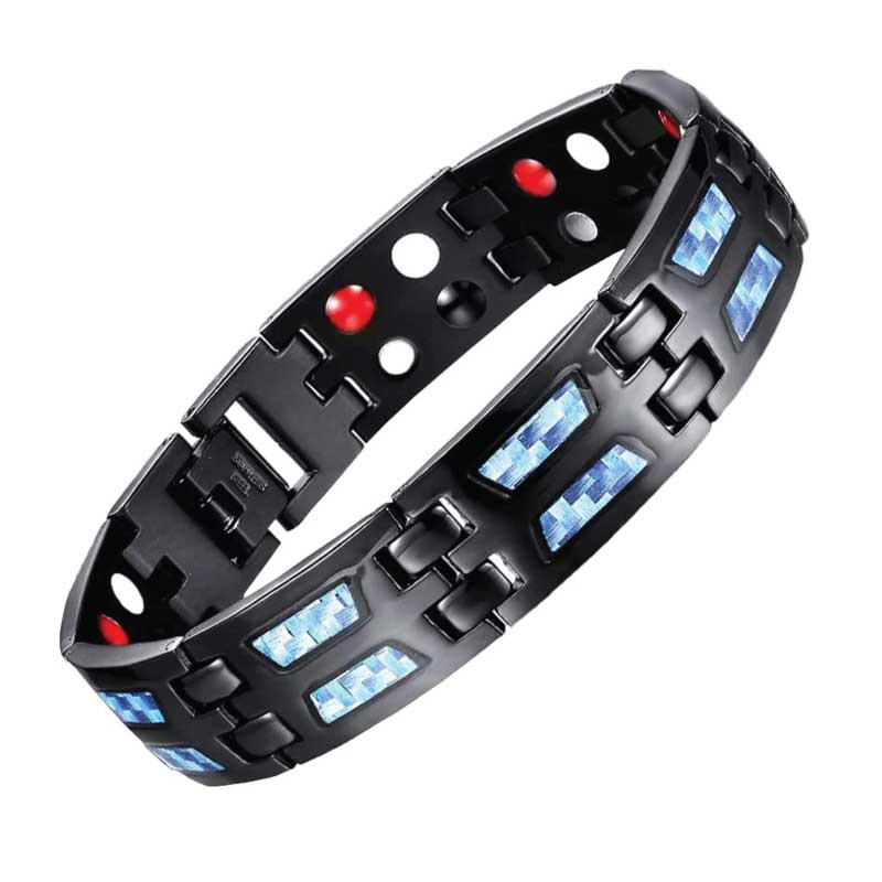 Carbon Blue Titanium Magnetic Therapy Bracelet – Adjustable Fit