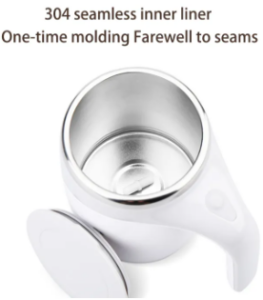 Rechargeable self-stirring coffee mug with magnetic mixing & 304 stainless steel. Portable, leak-proof & perfect for home or office use.
