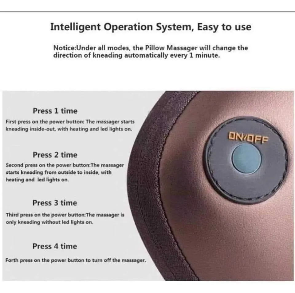 The ergonomic pillow design fits naturally around the contours of your body, while the infrared heating function provides warm, soothing therapy that melts away muscle tension, improves blood circulation, and relieves stiffness. With dual-direction kneading and automatic rotation changes, it mimics the hands of a professional massage therapist.